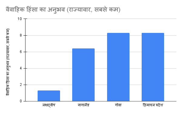 लक्षद्वीप (1.3%), नागालैंड (6.4%), गोवा (8.3%) और हिमाचल प्रदेश (8.3%) में सर्वेक्षण किए गए सभी राज्यों में सबसे कम हिंसा है.