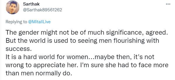 I agree. The bias comes out so naturally, so effortlessly, so unconsciously. It seems as though the person writing the material is (1) a man, (2) who is surprised that a woman-led company can be so big and (3) is both envious and borderline resentful. — G S SHRIDHAR (@ushrit2020) November 10, 2021