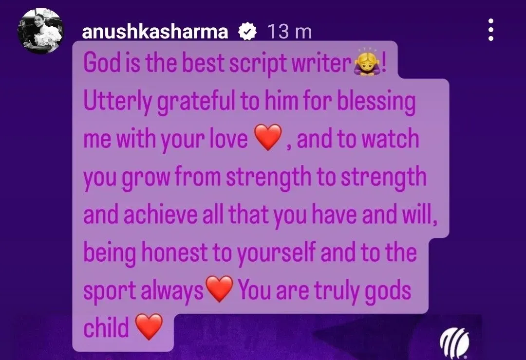 प्यार और सम्मान का ये सिलसिला एकतरफा नहीं रहा. इसके बाद अनुष्का शर्मा ने विराट कोहली के लिए एक इंस्टा स्टोरी लगाई. उन्होंने लिखा,