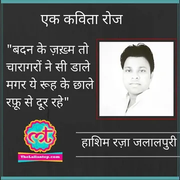 हाशिम रज़ा जलालपुरी, जलालपुर से आते हैं. यानी फैजाबाद के पास से. बीटेक और एमटेक करने के बाद ये अब उर्दू में एमए कर रहे हैं. उर्दू मंच का बड़ा नामी चहरा हैं ये. एक पाकिस्तानी एल्बम को अपने बोल दे चुके हैं. और इनकी किताब जल्द ही आने वाली है. पढ़िए इनकी एक गजल. तेरे ख्याल तेरे आरज़ू से दूर रहे नवाब हो के भी हम लखनऊ से दूर रहे