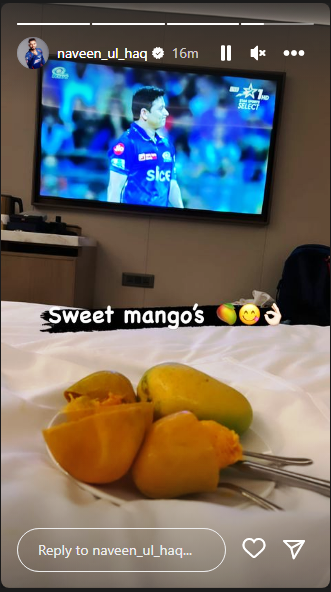 और नवीन ने इन्हीं चावला की एक फोटो इंस्टाग्राम स्टोरी पर लगाई. फोटो में टीवी, पीयूष के साथ एक प्लेट में कटे हुए आम भी दिख रहे थे. नवीन ने इस फोटो के साथ कैप्शन लिखा,