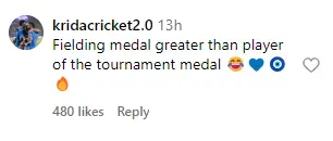 एक यूजर ने लिखा, फील्डिंग मेडल, प्लेयर ऑफ द टूर्नामेंट से भी बड़ा बन गया है.