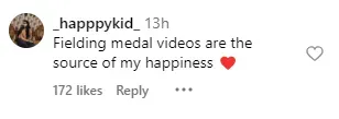 ICC ने इंटरव्यू वाला वीडियो शेयर किया तो फैन्स ने भी कॉमेंट सेक्शन में फील्डिंग मेडल को लेकर अपनी फीलिंग्स बयान कर दी. एक यूजर ने लिखा कि फील्डिंग मेडल वाली वीडियोज उनके लिए खुशी का जरिया हैं.