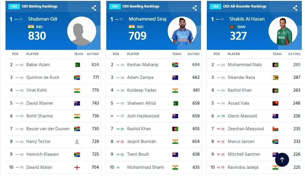 Shubman Gill और Mohd Siraj ICC ODI rankings में टॉप पर पहुंच गए हैं. वनडे रैंकिंग्स में Rohit Sharma, Virat Kohli भी टॉप 10 में हैं.