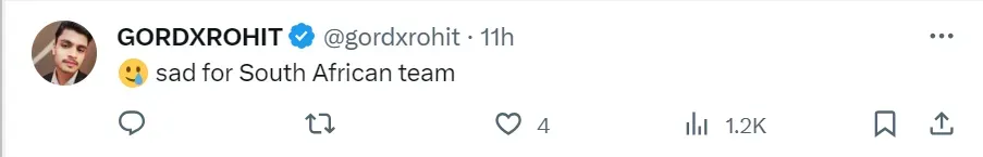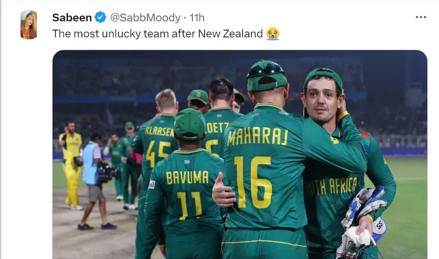 एक यूजर ने दुख जताते हुए लिखा, साउथ अफ्रीका की टीम के लिए उदास हूं.